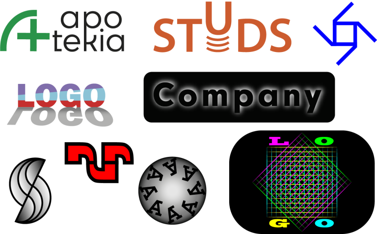 Lite blandade exempel. Apoteks-loggan var en del i ett skolarbete där huvuduppdraget var typografi och design av en trycksak. Övrigt är exempel på olika designuttryck och tekniker.