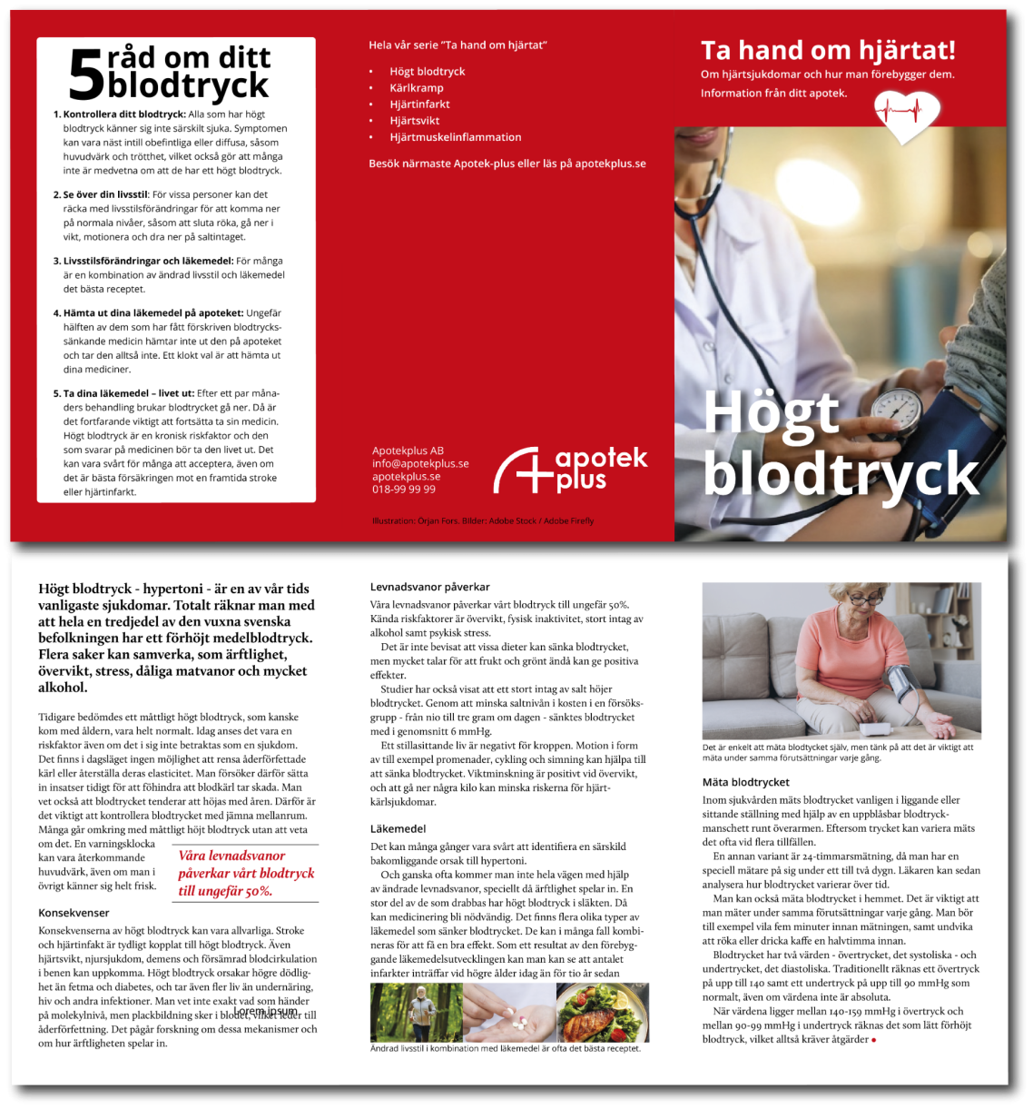 Texten var given och det skulle finnas med en tydligt avsändare i form av ett fiktivt apotek. Uppgiften var att skapa en layout och design lämplig för en vikfolder, i det här fallet med sex sidoe. Bilder, typsnitt, typografi, eventuella logotyper och grafiska element var upp till den egna kreativiteten.